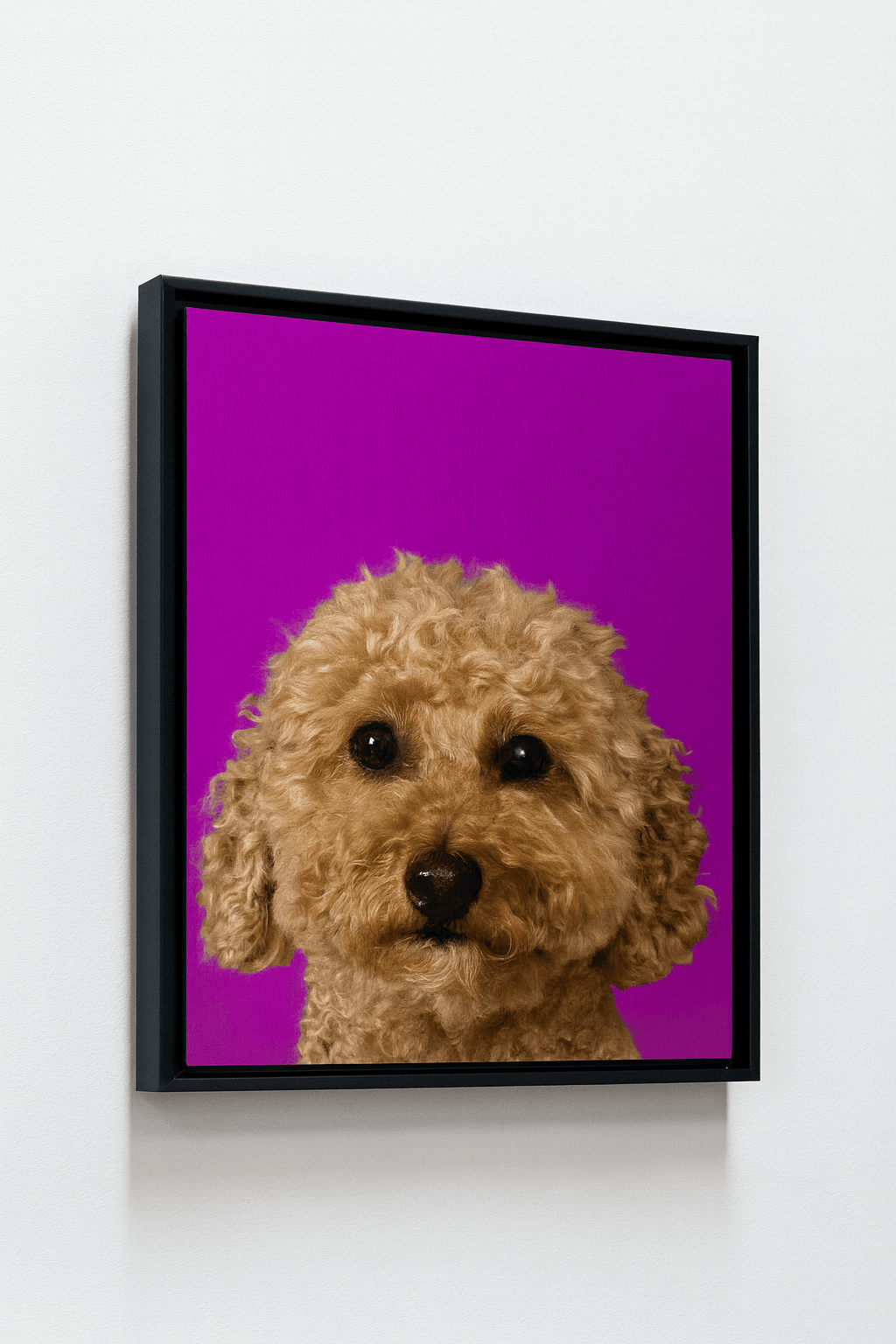 Featuring clean crops, vibrant or minimalist backgrounds with hand curated colors, and gallery-inspired presentation, these portraits transform your pup’s personality into modern wall art.